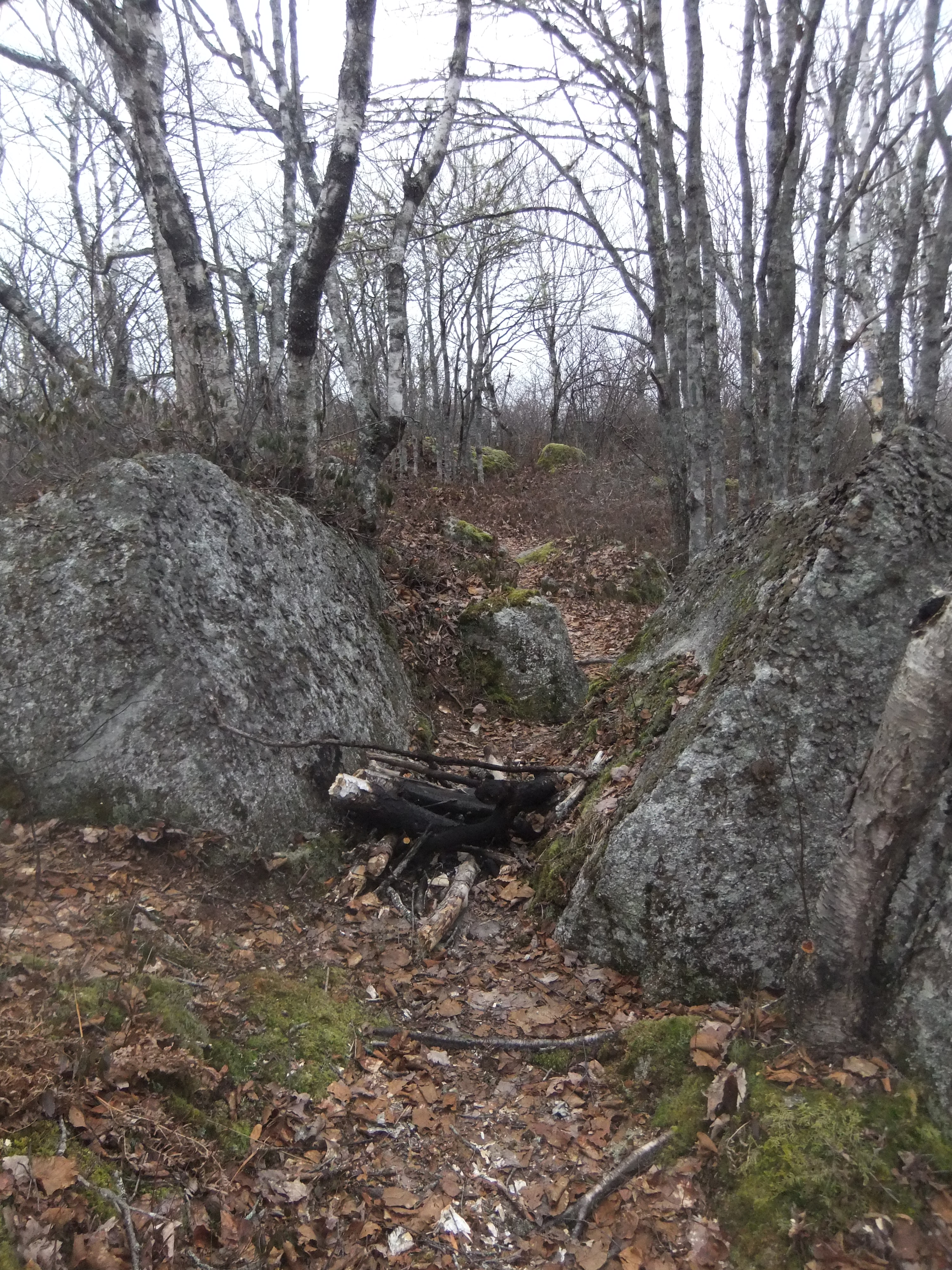 A little farther on we came across this evidence of a fire built between two large boulders right on the trail. No idea what these people were thinking…