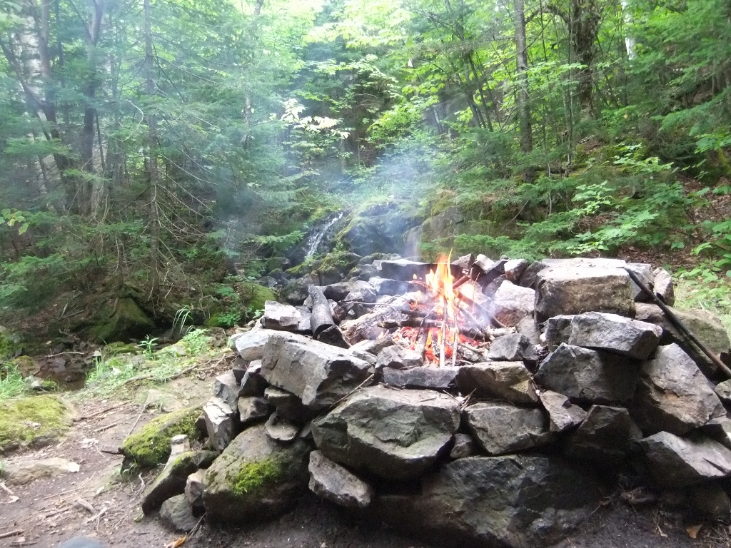 In front of the lean-to was another great firepit, and sitting in the lean-to you could look out past the crackling fire to a babbling brook with a small waterfall about 50 feet away. Sounds of the water helped lull us to sleep. Of note, in the dark it was a bit of a challenging hike to the outhouse which was located 200ft back toward the main trail. The small river crossing required you to be at least partially awake. The firewood supply was also severely depleted in the immediate vicinity and required some hiking to find anything small enough to break by hand. We decided that a saw would be helpful for breaking up the larger pieces of downed wood on future trips.