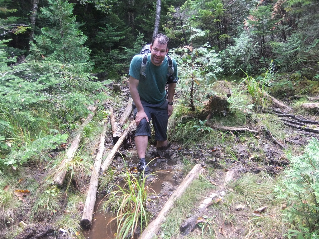 As we got lower, the trail levelled out to mud, mud, and more mud. After days of seeing hardly anyone on the trail we started seeing group after group after group. This was the long weekend before school started, and we couldn’t even count the number of “new” school sneakers we saw along the way. At this point the day was rapidly clearing and the temperature was rising. We joked about running back up to check out the view.