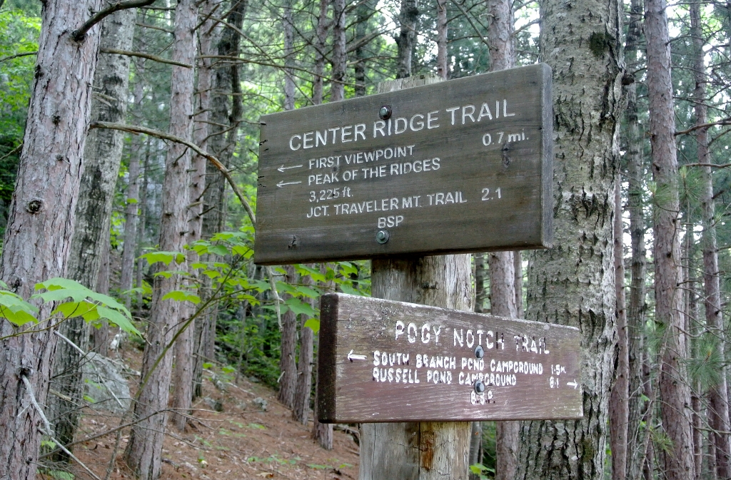 We had a great view of South Branch Pond from the lean-to, and we could also see the beginning of our climb off to the left. The morning was uneventful as we quickly packed up the site and moved the car to the parking lot prior to beginning the hike. We signed the trail log at 7:10am, pretty much right on schedule.