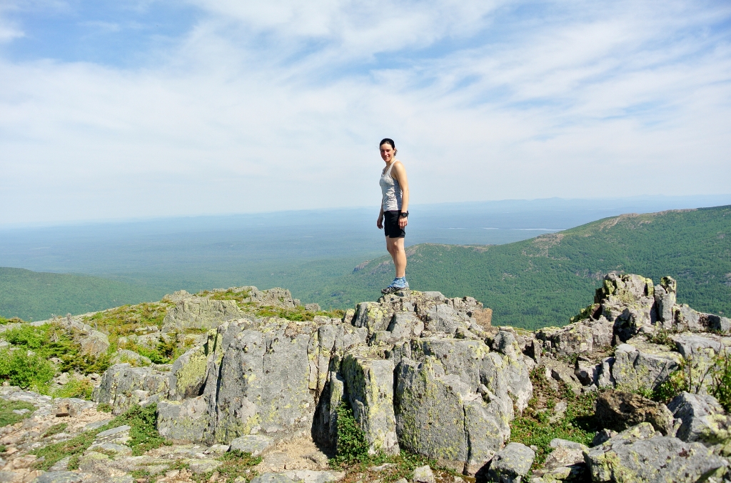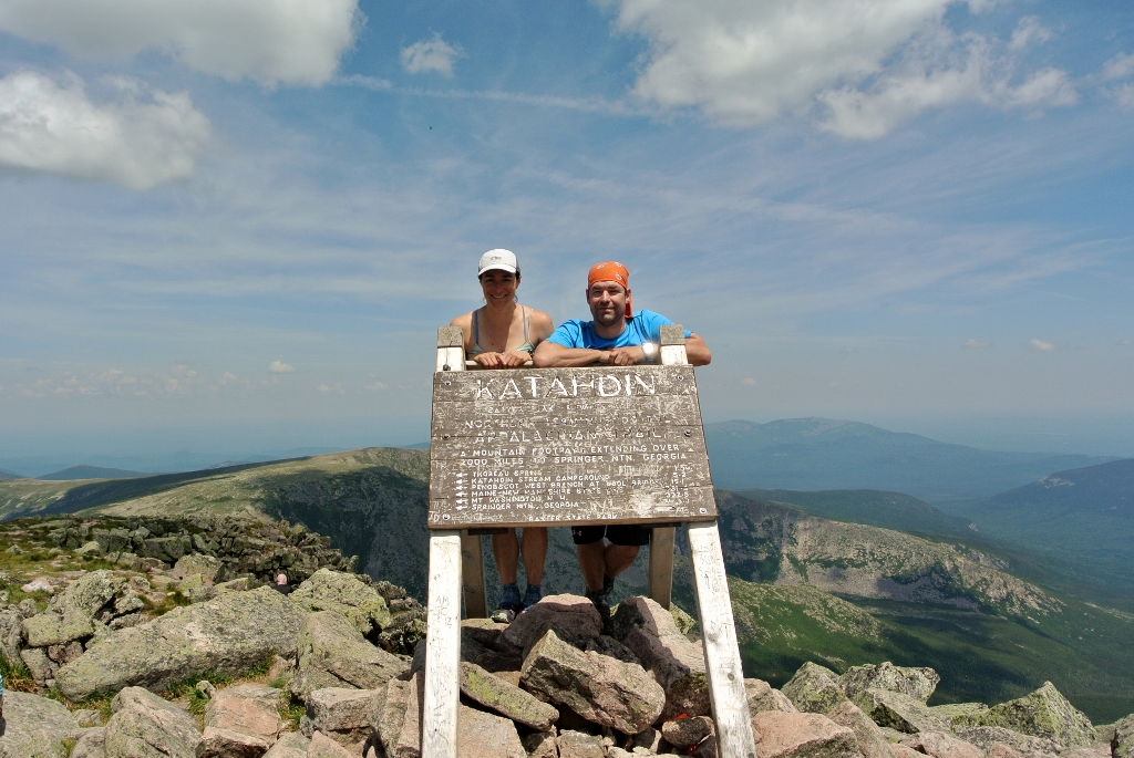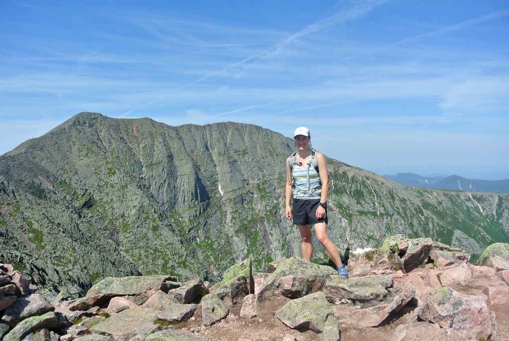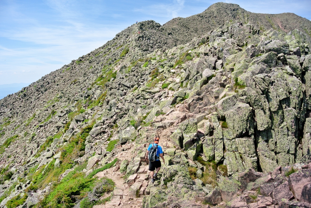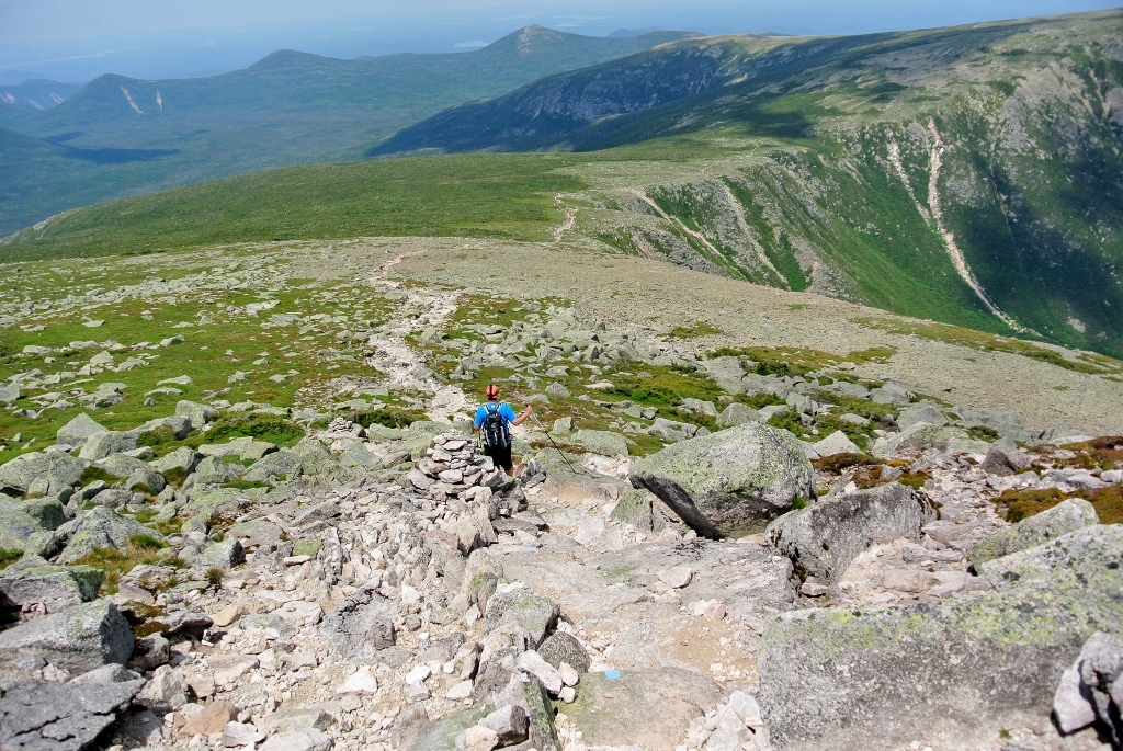 Baxter Peak for the second time. Although the photo doesn’t show it there were dozens of hikers taking a break up on top, including quite a few other Maritimers one of whom we recognized from the 9 Toe Adventure Race the previous winter. We had lunch and sat for close to an hour chatting.