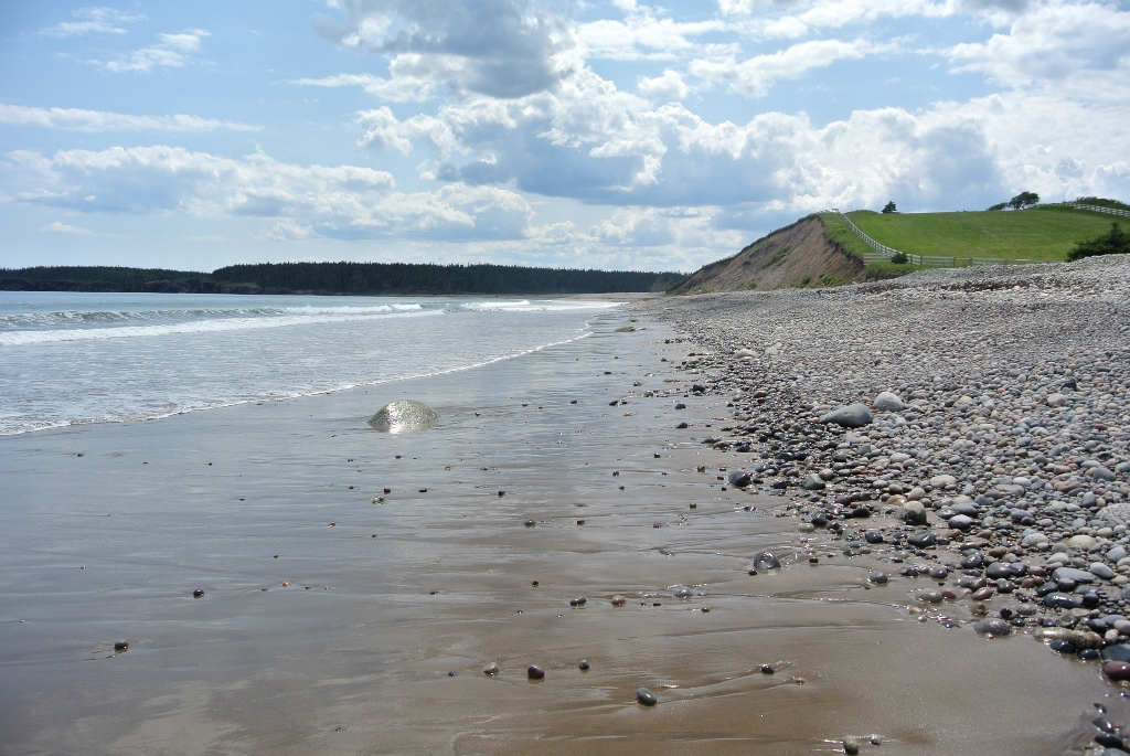 Hirtle’s is a long sand beach with a shallow swimming lake behind and spectacular scenery.