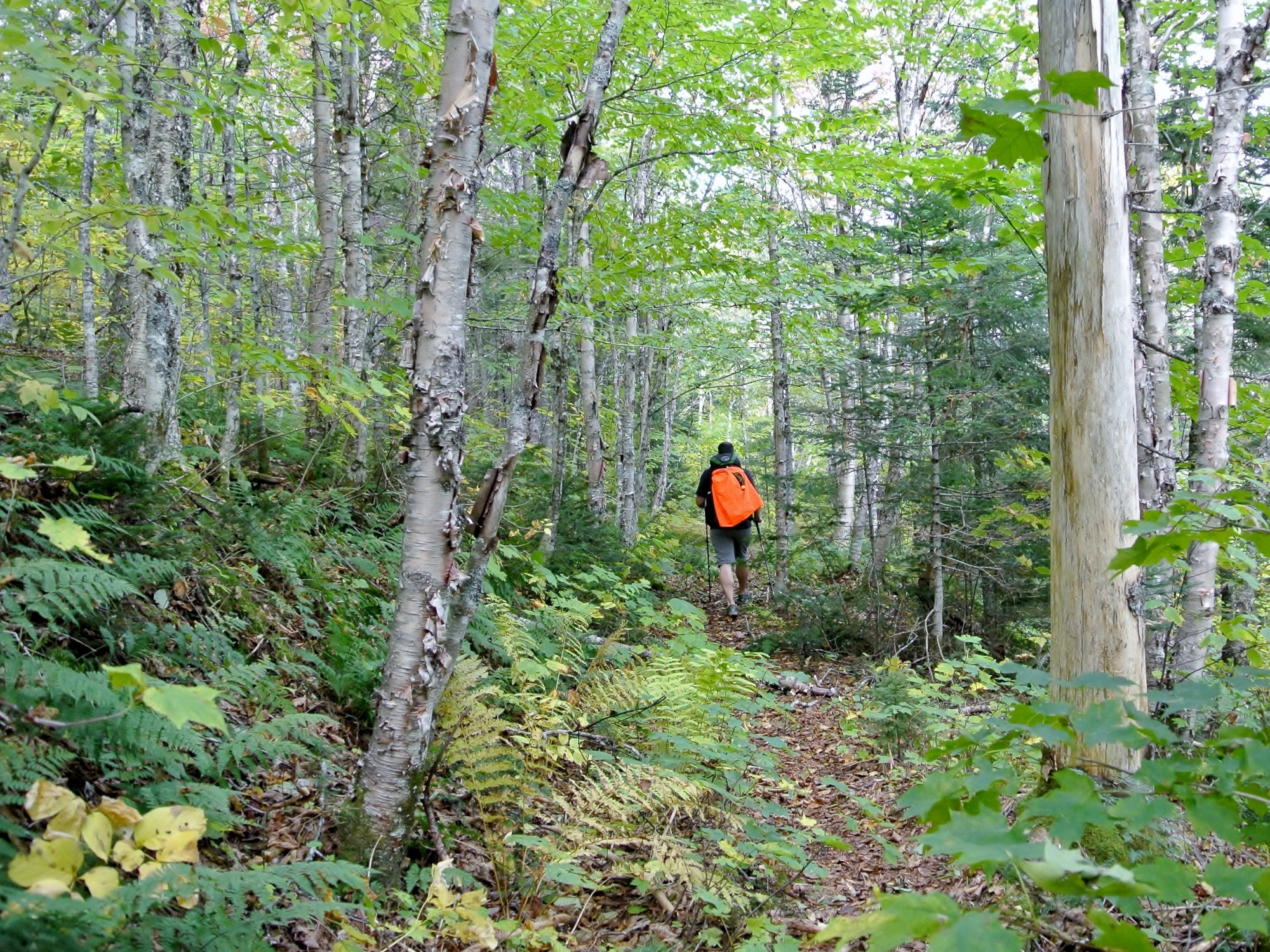 There are beautiful hardwood stands along the route. The pictures show that we decided to wear orange on this trip. Although rifle season is not yet open, archery and muzzleloader hunting for deer is now allowed so we decided to be on the safe side.