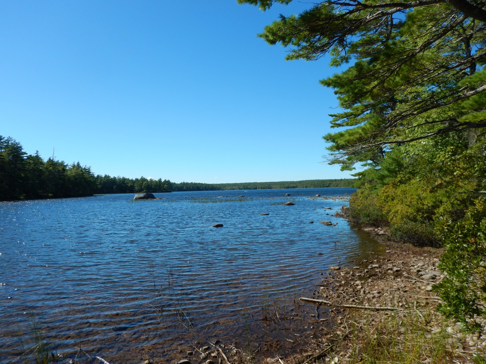 It is a lovely view where the trail reaches the tip of Frozen Ocean Lake. From here you would turn left to do the smaller loop back around Big Dam Lake or turn right to stay on the Liberty Loop.
