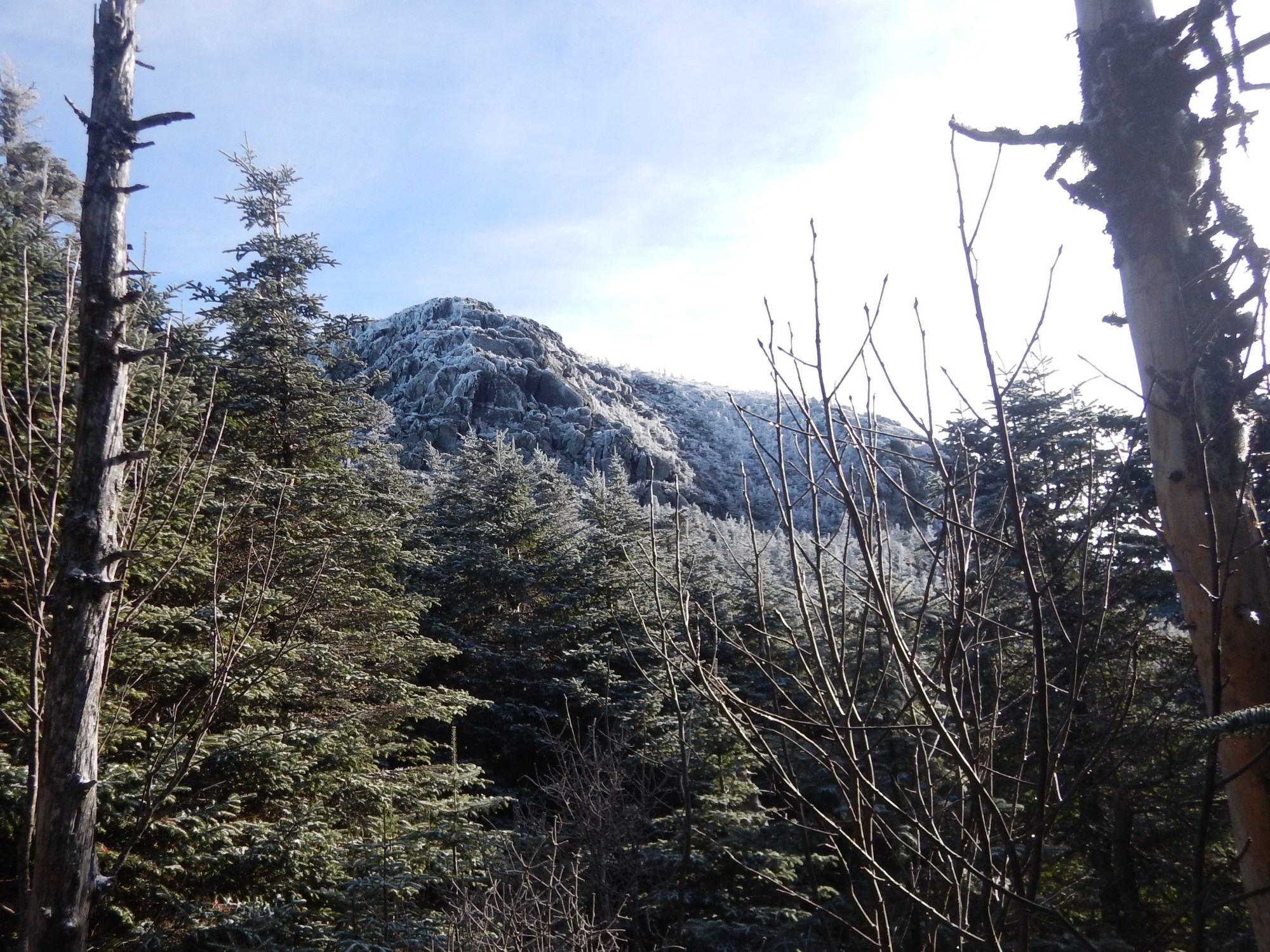 Soon after, we reached the top of the Fire Warden’s trail at the Avery Col campsite and turned right to make the .4mi trek out to Bigelow Avery peak. (For the rest of this day we’d be following the AT). The sun was shining brightly but the wind was whistling above us as we emerged from shelter.